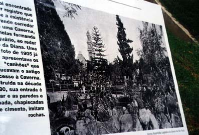 “Tava procurando onde passava um cano”. Foi assim que Raimundo Jorge Santos Carvalho descobriu um aquário subterrâneo em meio ao Parque da Luz. A caverna sob o Lago de Diana era uma atração totalmente desconhecida, não havia qualquer registro a respeito. A foto mais antiga da parte inferior do Lago, de 1905, mostra canhões de cimento instalados no lugar das entradas da caverna.