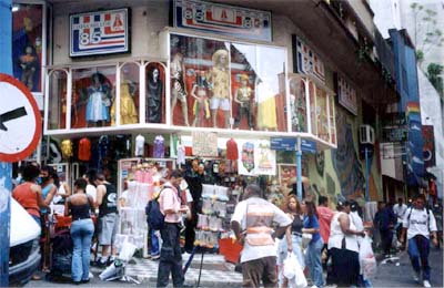 Uma pessoa no meio da rua em plena Ladeira Porto Geral, na região da 25 de Março, às vésperas do Carnaval. Seria um suicida? Não! Ele está devidamente uniformizado com um colete de listas fosforescentes. Luciano Paulo Joaquim,21 anos, trabalha para o estacionamento que fica numa travessinha da Ladeira. Ele fica ali bem no cruzamento para coordenar o trânsito. E que trânsito!!! "Aqui é a maior loucura todo dia. Fica pior na época de festas - no Carnaval e no Natal - porque a tendência é massificar", analisa ele. As calçadas, que já são tomadas constantemente pelos camelôs, não comportam a multidão que, no fim, invade as ruas e disputam espaço com os carros.