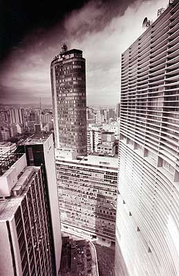 Participando de uma jornada fotográfica pelo Centro de São Paulo, Luísa Dias Ferreira teve a oportunidade de registrar o que se vê e o que se sente de uma janela do Copan. Este é o título de uma das imagens que a fotógrafa produziu em um fim de semana chuvoso em setembro de 2001.