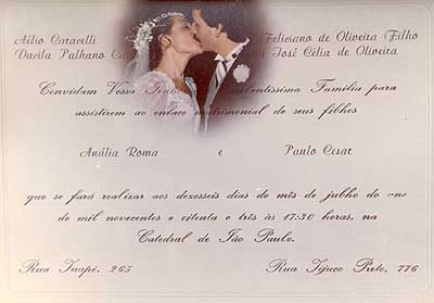 No fim da tarde do dia 16 de julho de 1983, Anália Roma entrava na Catedral da Sé. Como manda a tradição, estava vestida de branco, usava véu e grinalda e carregava um buquê feito de rosas brancas de verdade. Foi conduzida por seu pai até o altar da igreja, onde Paulo César a esperava.