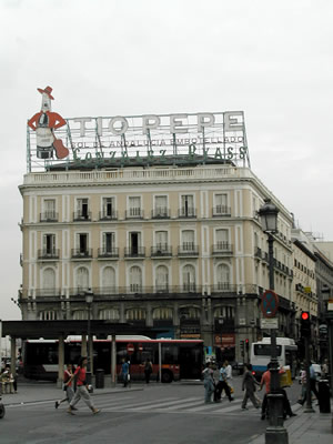 Olhando ao meu redor, eu consegui ver muita gente de bobeira (daqueles que ficam em pé, olhando para o nada, mas prestando atenção em tudo, sabe?), alguns engraxates e uma tiazinha vendendo bilhetes da Loteria Federal. Fechando o olho, não parece que estamos ali perto da Praça da República, andando em direção ao ex-Mappin? Bom, esta foi a impressão que eu tive. Principalmente quando vi, numa travessa da Puerta del Sol, um prédio que me lembrou muito a “finada” Mesbla, onde fui muitas vezes com minha mãe comprar “roupas para ir pra escola”.